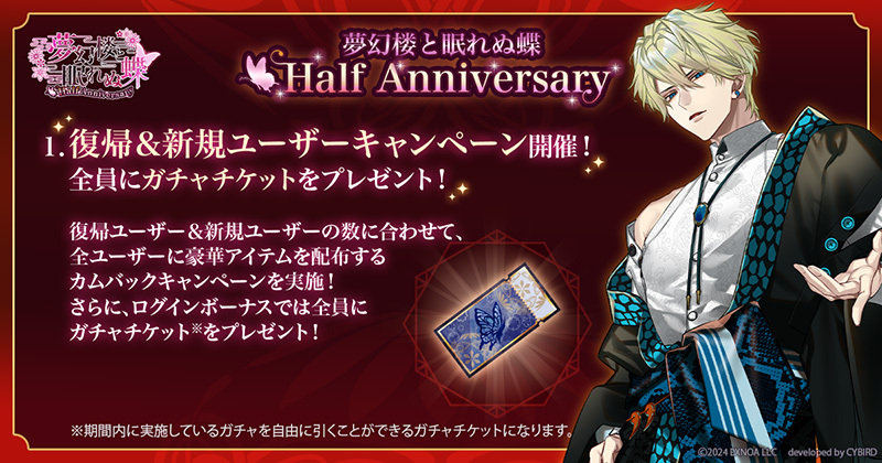 おかげさまで「夢幻楼と眠れぬ蝶」は、5月19日(月)にてハーフアニバーサリーを迎えます!