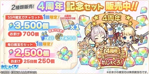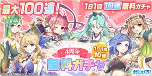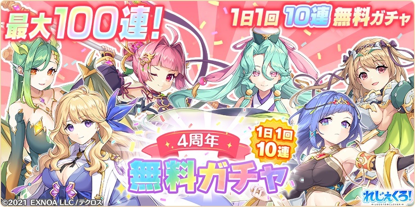 ▼4周年記念!最大100連引ける1日1回10連無料ガチャ開催!