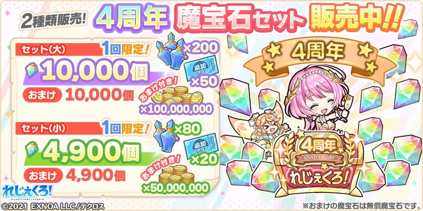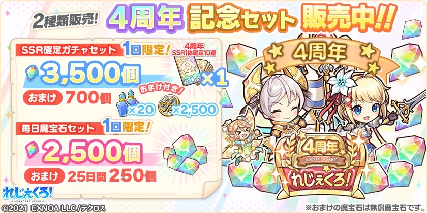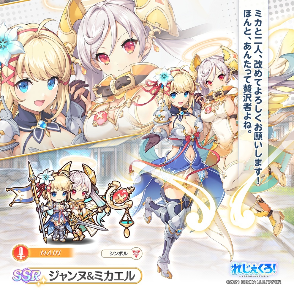 DMM GAMES「れじぇくろ!~レジェンド・クローバー~」にて、4周年を記念して最大100連!1日1回無料10連が開催!さらに「ジャンヌ&ミカエル」がコンビキャラとして登場!