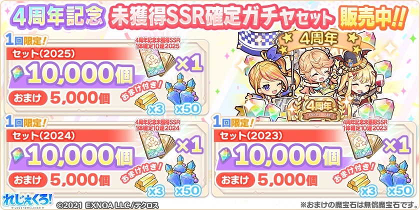 ・4周年記念未獲得SSR確定ガチャセット(2025)/(2024)/(2023)