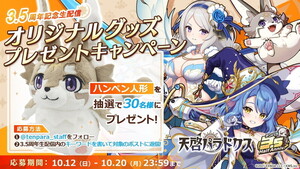 合同会社EXNOA(本社:東京都港区、CEO:東條 寛、URL:https://games.dmm.com/)と株式会社KMS(本社:東京都品川区、代表:梶原 健太郎、URL:https://kms3.com/)は、3DタクティクスRPG『天啓パラドクス』で、サービス開始から3.5周年を記念した特別なキャンペーン、イベントを開始したことをお知らせします。