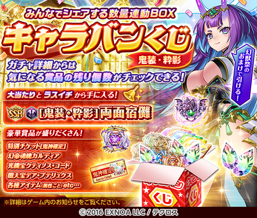 さらに、ガチャを1回引くたびに「キャラバンくじ[鬼装・粋影]券」1枚がおまけとして付きます!