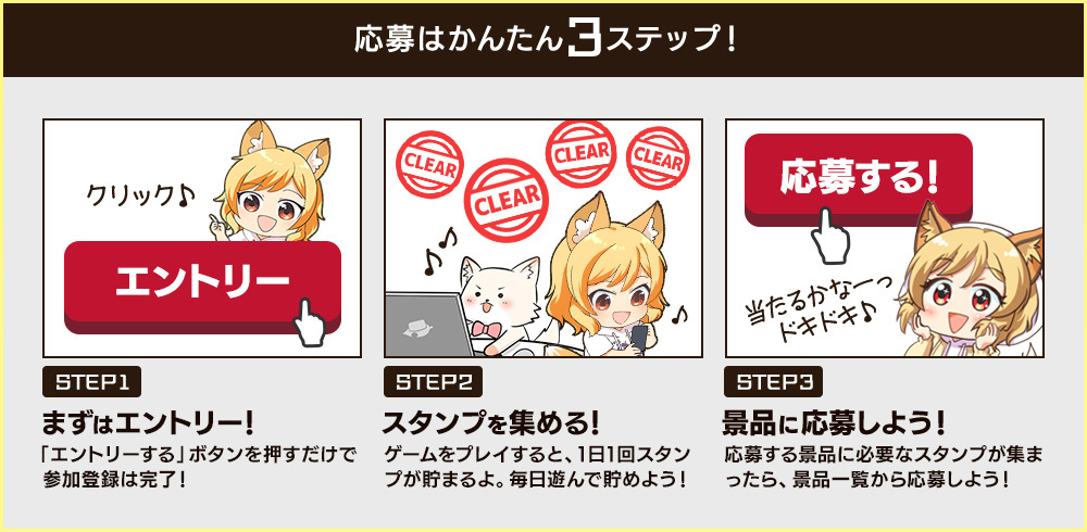 キャンペーンにエントリー後、対象デバイス(PCブラウザ、スマホブラウザ、GAMESストア版Androidアプリ、PCダウンロード版)にてDMM GAMESで配信中のゲームをプレイすると各デバイス1日1回スタンプを獲得できます。