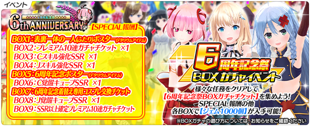 【6周年記念祭BOXガチャイベント】期間:11/5 (水)16時~12/10 (水)11時59分