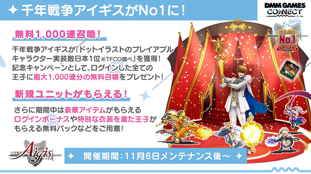 「ドットイラストのプレイアブルキャラクター実装数日本1位※TFCO調べ」を獲得!