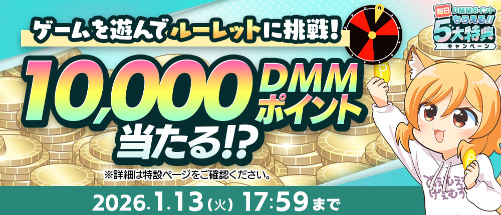 【キャンペーン2】毎日最大10,000DMMポイントが当たるルーレット開催!