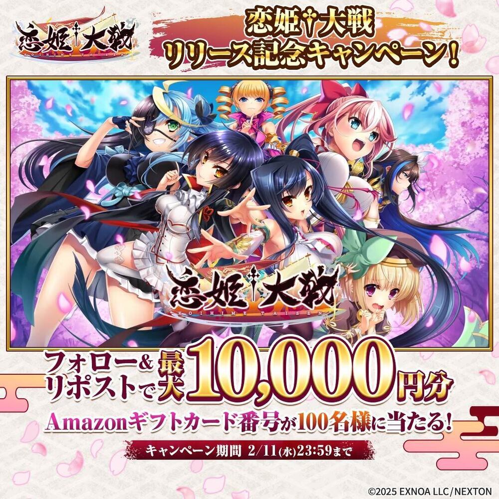 合同会社EXNOA(本社:東京都港区、CEO:東條 寛、URL:https://games.dmm.com/)が運営するDMM GAMESは、「恋姫シリーズ」初となる全シリーズ集結の超大作『恋姫†大戦』が本日、2026年2月5日(木)よりサービス開始したことをお知らせします。