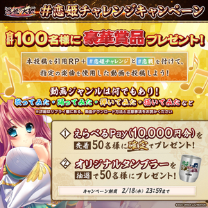 指定楽曲「恋姫†集合☆いっせーのっせ!」を使用した動画を制作・投稿することで参加できる企画です。