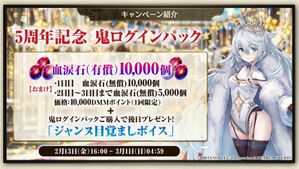 5周年記念 鬼ログインパックをご購入いただいた全員に「ジャンヌ目覚ましボイス」をプレゼント!