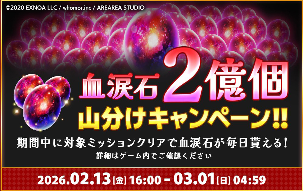 ■5周年の感謝を込めて、血涙石「2億個」山分けキャンペーン!