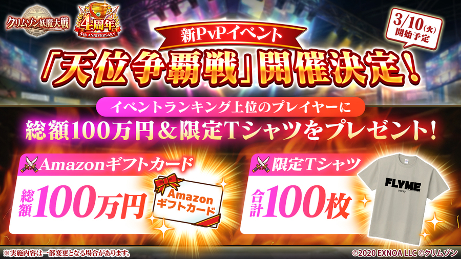 3月10日より開催される新PVPイベント「天位争覇戦」では、ゲーム内報酬に加えて、豪華なリアル得点が用意されています。
