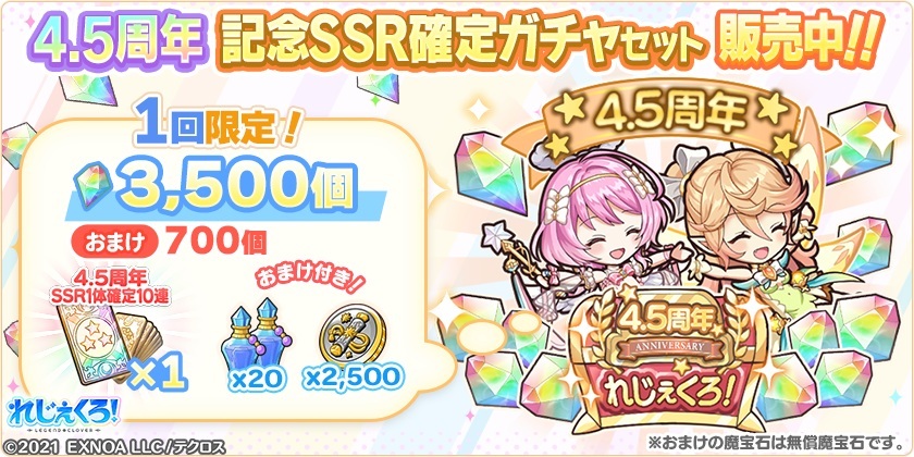 DMM GAMES『れじぇくろ!~レジェンド・クローバー~』にて、4.5周年記念!最大100連引ける1日1回10連無料ガチャ開催!さらに「アンドロメダ&カシオペア」が新コンビキャラとして登場!~新レジェンド「ジャック・ザ・リッパー」「シャーロック・ホームズ」も登場!~