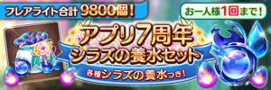 フレアライトとAP回復薬がセットになった、2種類の『特・アプリ7周年学園セット』の4種類のお得なセットが登場しました!